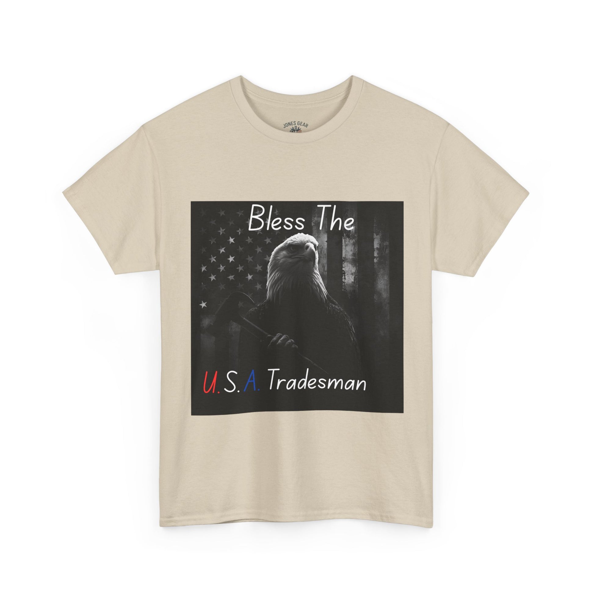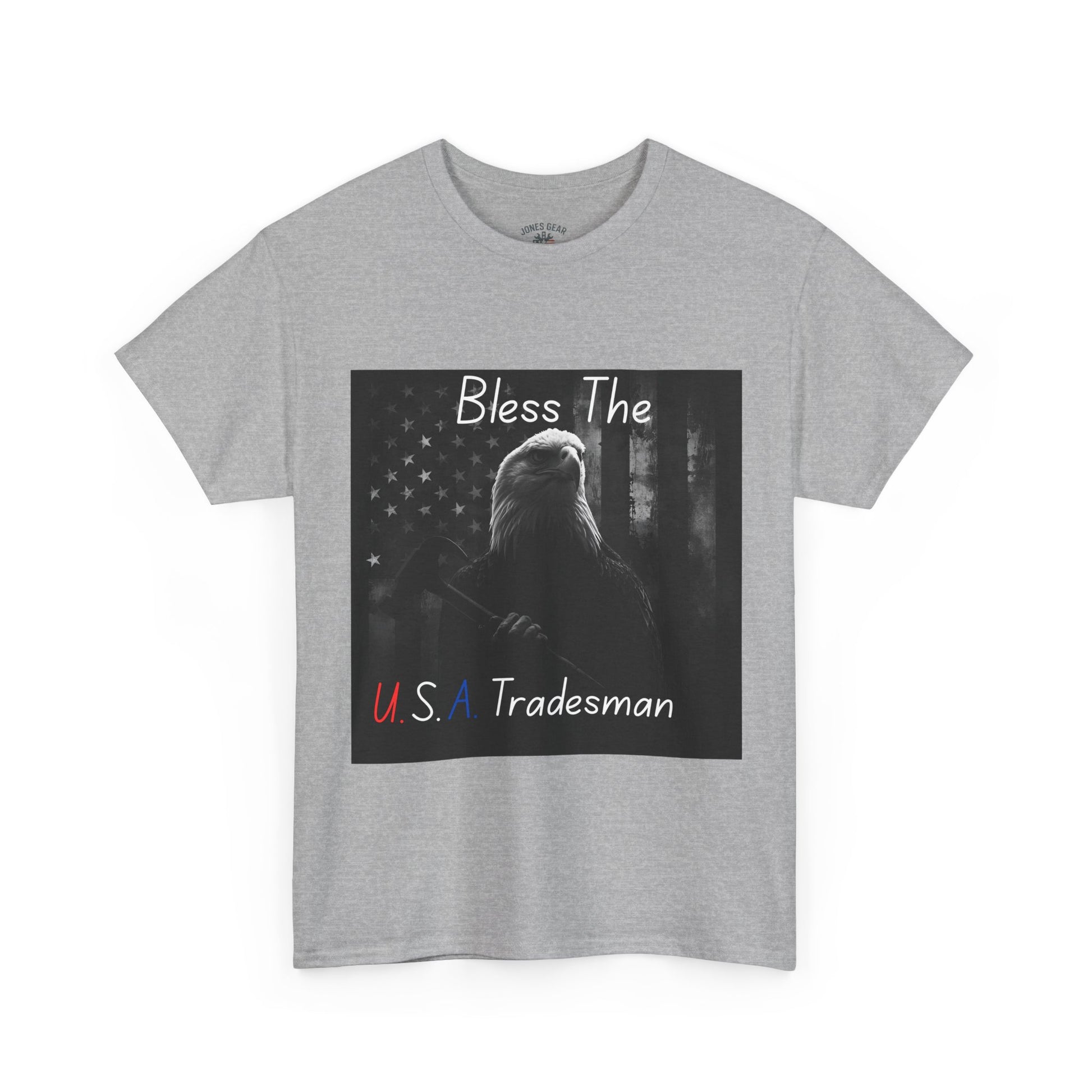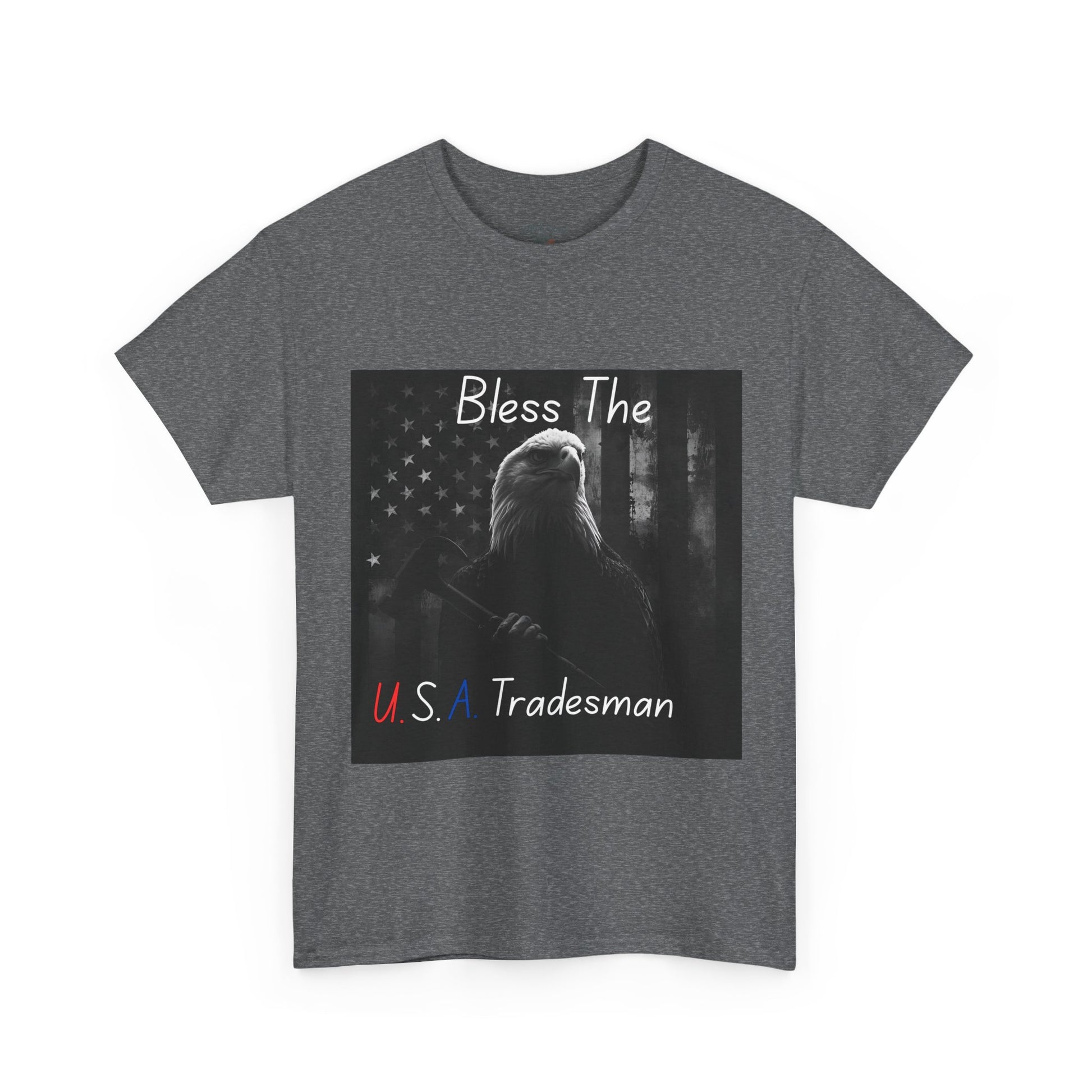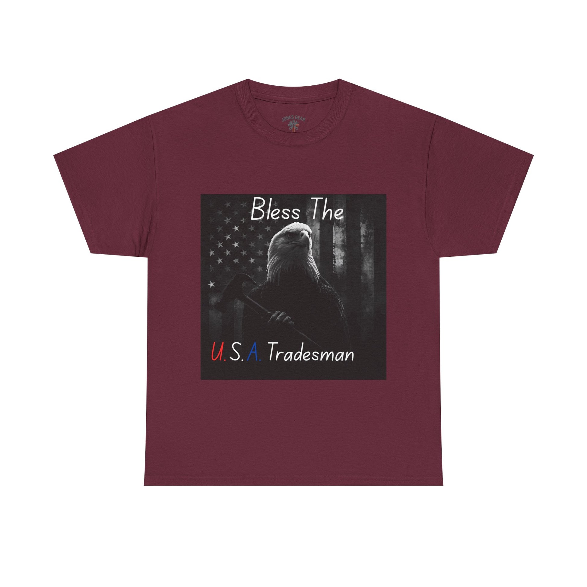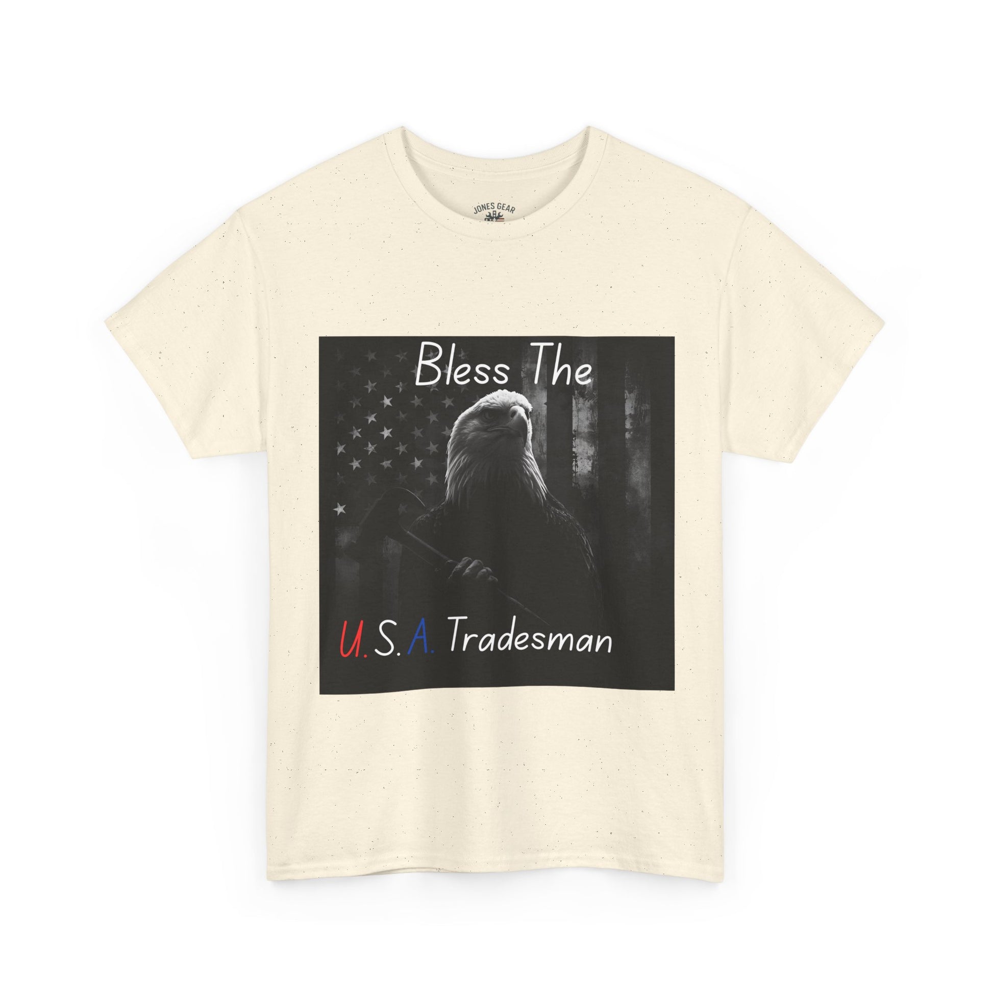 Show your patriotism with this Bless the USA t-shirt featuring a majestic eagle and American flag background design. Perfect for those who love the USA and want to express their pride. Ideal for Fourth of July celebrations, Memorial Day, Veterans Day, or any patriotic event.