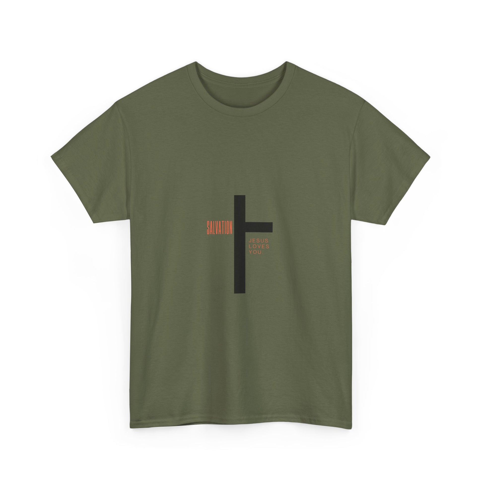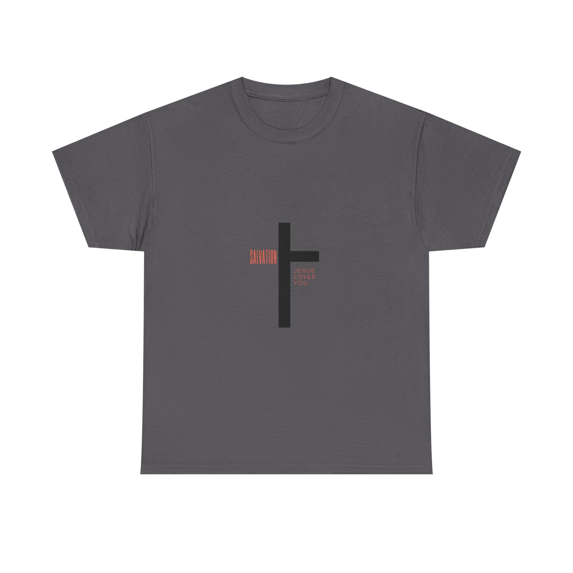 T-Shirt - Cross with 'Salvation' and 'Jesus Loves You' Design